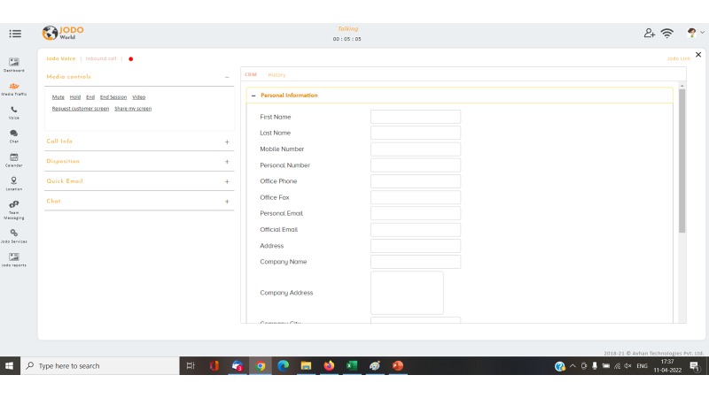 Conference : The Agent also has the conference option via which they can start the conference with the Third-party or with the internal team member.